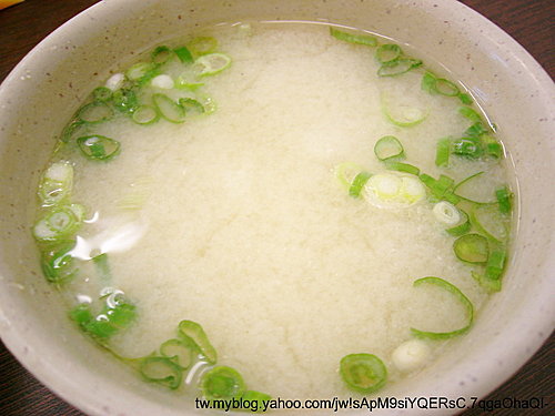 附上一碗生菜沙拉和味噌湯,